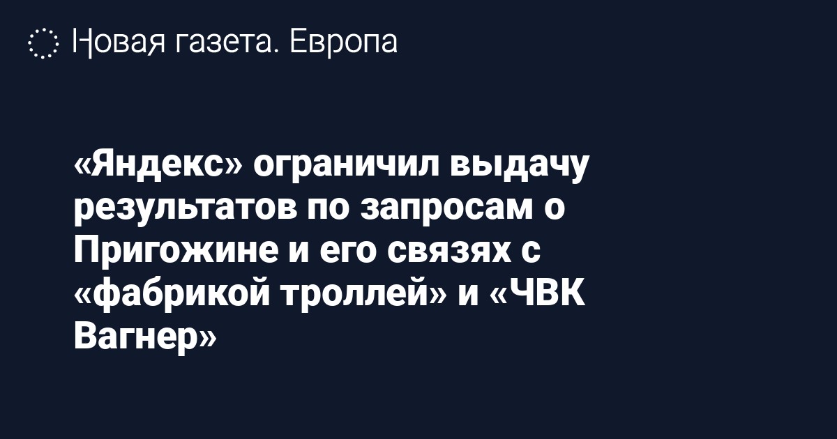 Сколько всего результатов было удалено, «Яндекс» не сообщает. «Можем объяснить» также отмечают, что на первой странице поисковик демонстрирует ссылки на интервью Пригожина «подконтрольным» ему СМИ — «Невским новостям» и РИА «ФАН».