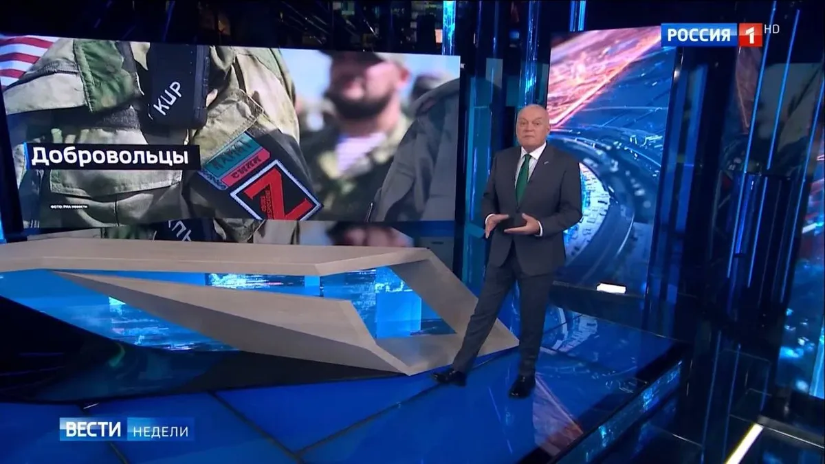 В «Вестях недели» прорекламировали программу по набору наемников в Украину, которая действует в Чечне. Пятиминутный сюжет показали в эфире от 10 июля.