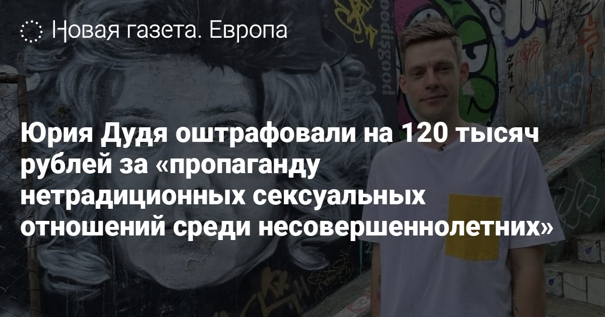 Суд в Лефортово признал журналиста Юрия Дудя виновным по статье о «пропаганде нетрадиционных сексуальных отношений среди несовершеннолетних» (ч. 2 ст. 6.21 КоАП).