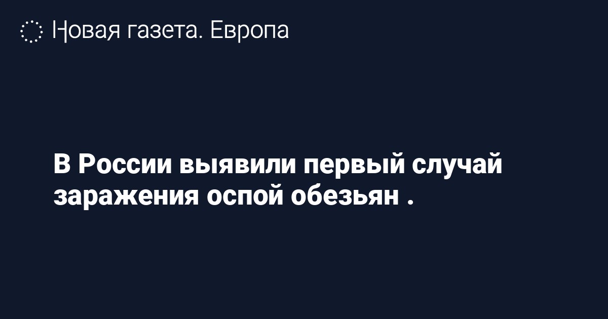В России подтвержден первый случай заражения оспой обезьян, сообщает пресс-служба Роспотребнадзора.
