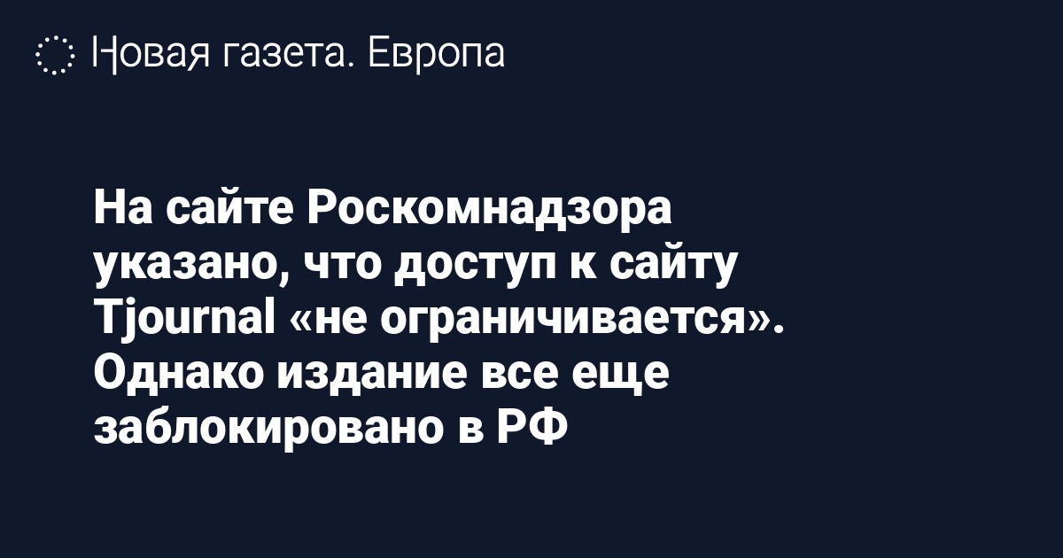 На сайте Роскомнадзора указано, что доступ к сайту Tjournal «не ограничивается». Однако он до сих пор заблокирован.