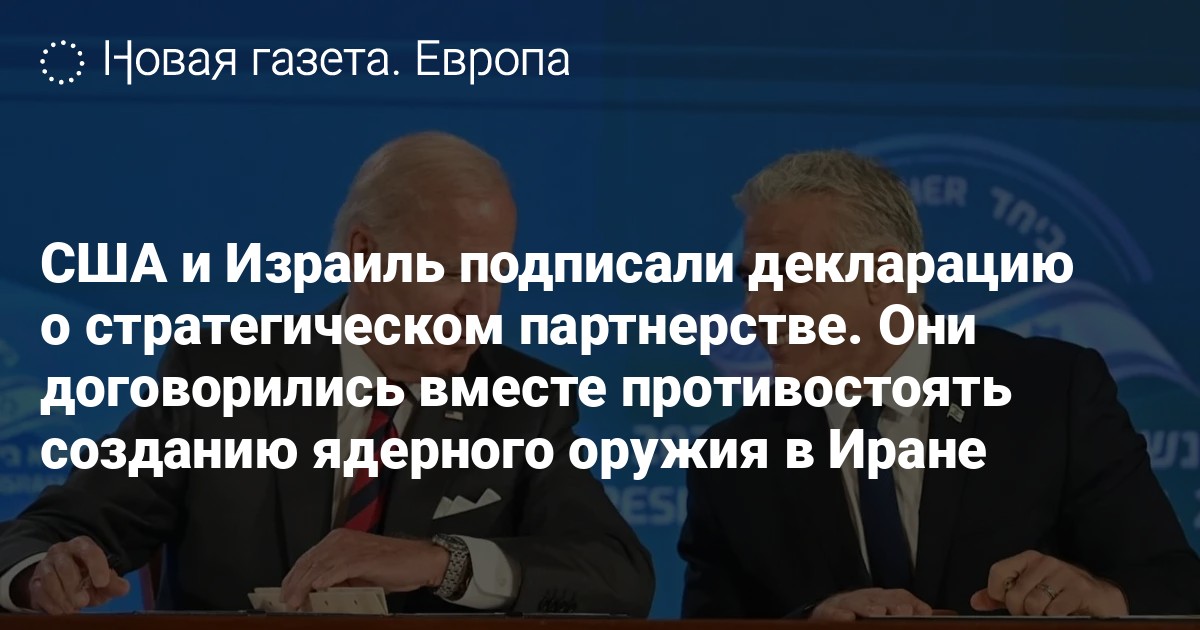 Президент США Джо Байден и премьер-министр Израиля Яир Лапид подписали декларацию о стратегическом партнерстве между двумя странами, сообщила пресс-служба Белого дома.