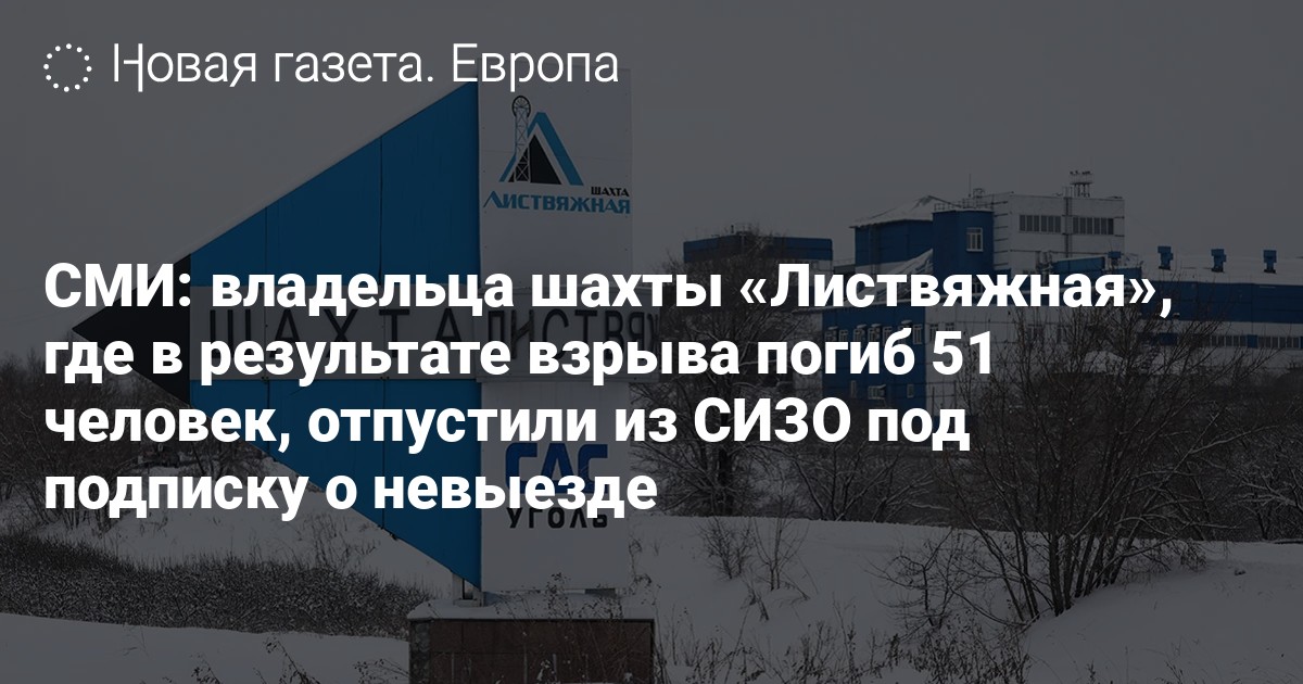 Кемеровский суд отпустил из СИЗО под подписку о невыезде Михаила Федяева, одного из владельцев шахты «Листвяжная», сообщают «Коммерсант», ТАСС и местный портал NGS42.RU со ссылкой на источники.