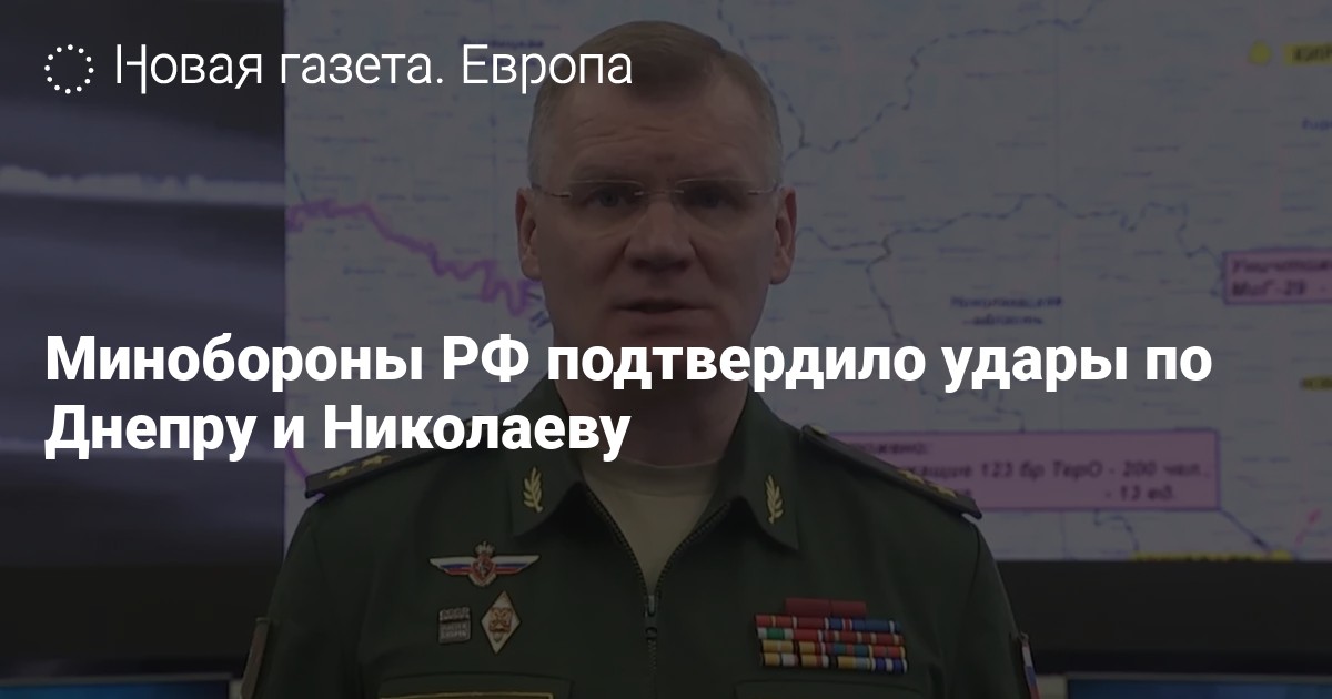 Минобороны РФ в своей ежедневной сводке подтвердило нанесение ударов по городам Николаев и Днепр. Об этом сообщается в телеграм-канале ведомства.