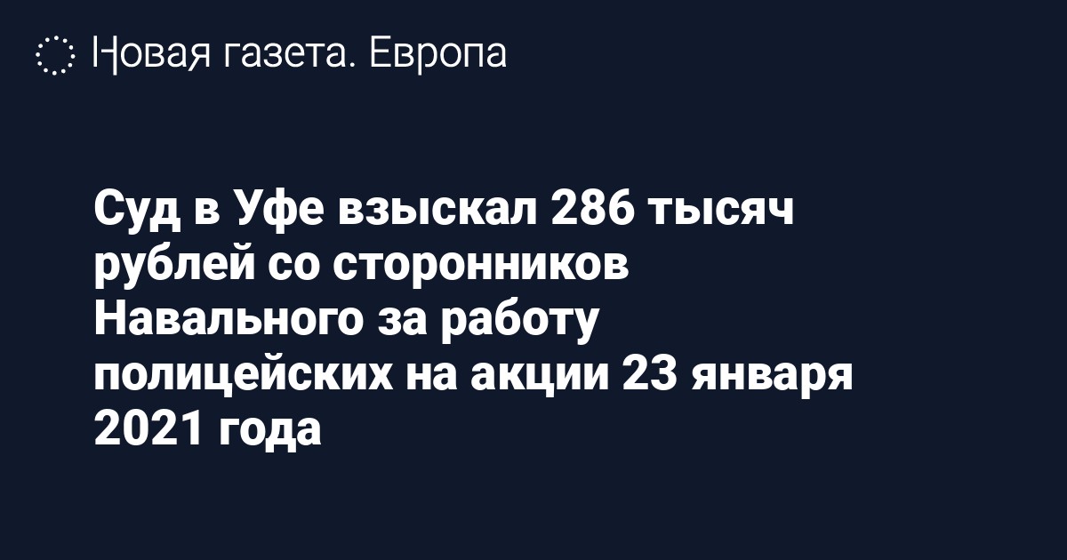 В январе 2021 года во многих российских городах прошли протесты в поддержку политика Алексея Навального. Полиция потребовала выплатить компенсацию за работу на митингах в Уфе, Омске, Пензе, Челябинске, Ярославле и других городах.