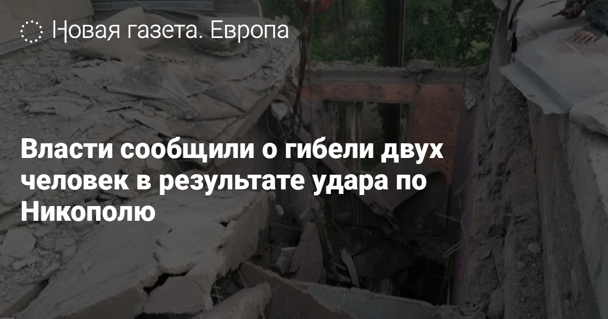 В результате удара российских войск по Никополю погибли два человека. Об этом сообщил в телеграм-канале председатель Днепропетровской областной военной администрации Валентин Резниченко.