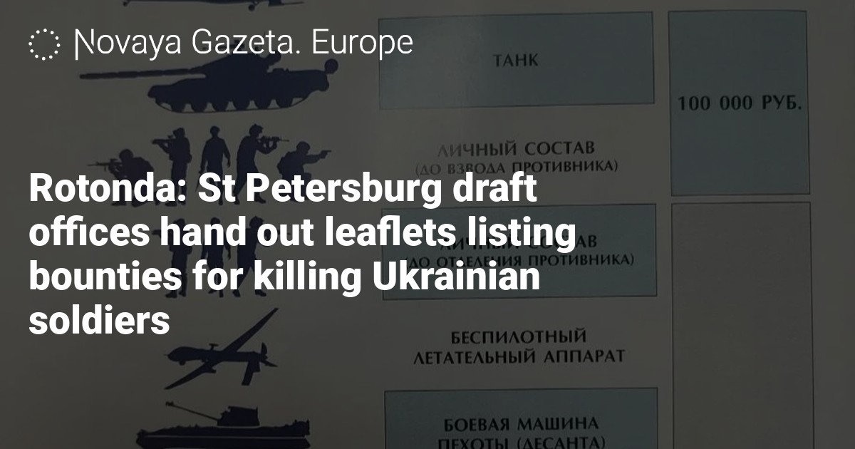 A leaflet called “Special Military Operation Participant’s Guide” is being distributed by conscription offices in Russia’s Saint Petersburg; it lists bounties for “destroying enemy’s manpower,” Rotonda cites an anonymous local legislator.