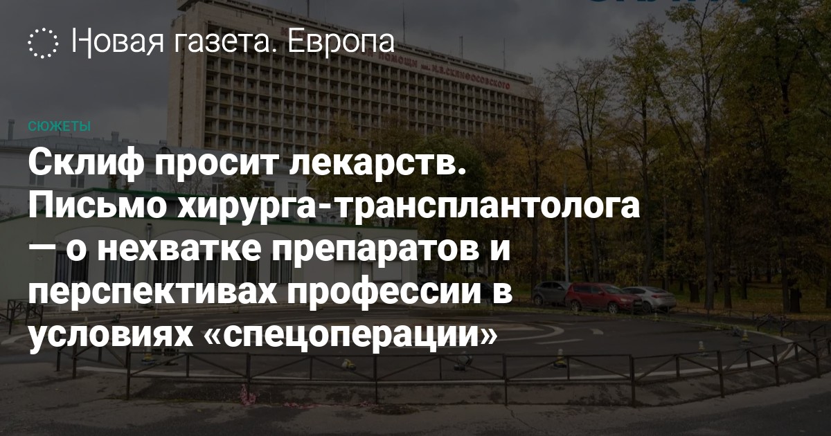 В связи с публикацией в СМИ информации о якобы нехватке лекарственных препаратов в отделении трансплантации почки НИИ Склифосовского, Институт выступает с опровержением.