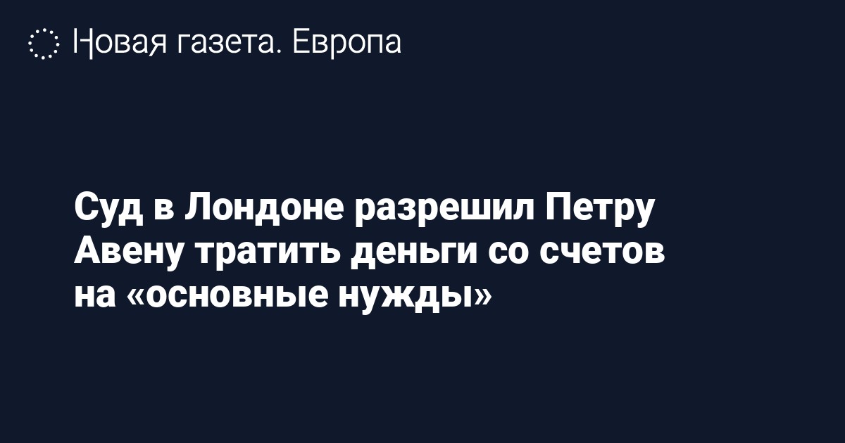 Лондонский суд разрешил российскому миллиардеру Петру Авену оплачивать «основные нужды» со своих счетов. Об этом пишет Bloomberg со ссылкой на судебное постановление.