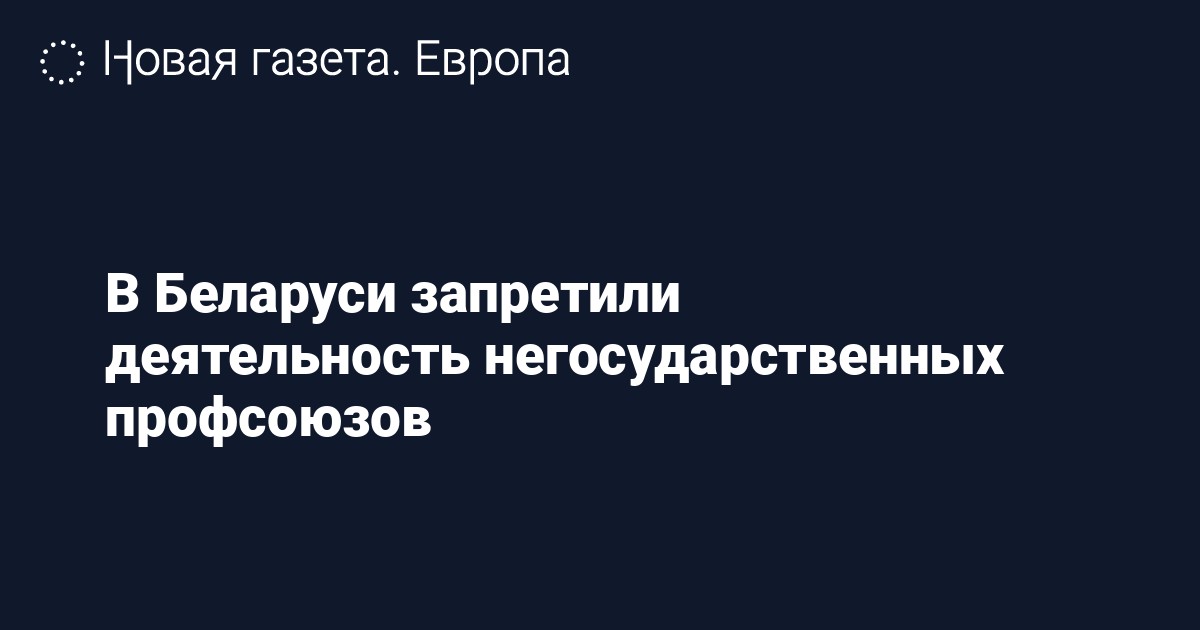 Верховный суд Беларуси по иску генпрокурора запретил в стране деятельность негосударственных профсоюзов. Об этом говорится в телеграм-канале Генпрокуратуры страны.