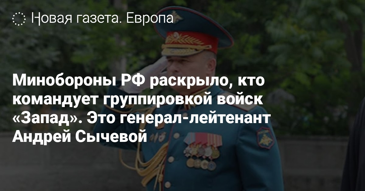 Минобороны РФ впервые назвало имя командующего группировкой войск «Запад», участвующей в войне в Украине. Ее возглавляет генерал-лейтенант Андрей Сычевой, сказано в ежедневном отчете ведомства.