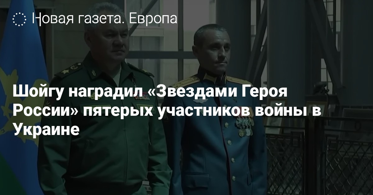 Министр обороны Росси Сергей Шойгу вручил медали «Золотая Звезда» пятерым российским военным, участвующим в войне в Украине. Об этом сообщается на сайте ведомства.