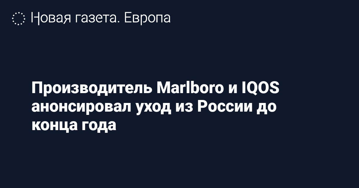 В американской табачной компании Philip Morris сообщили о планах уйти с российского рынка до конца этого года. Об этом заявил генеральный директор концерна Яцек Ольчак в интервью Bloomberg.