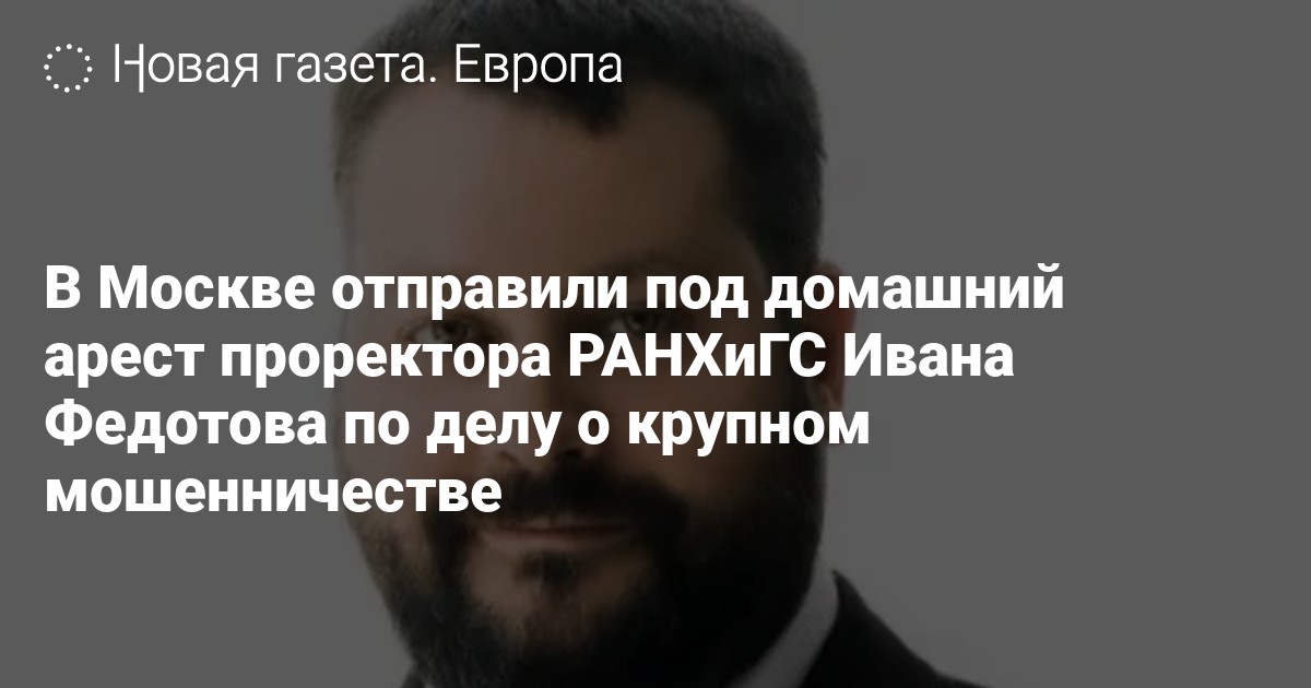 Тверской районный суд Москвы отправил под домашний арест проректора РАНХиГС Ивана Федотова по делу о мошенничестве в крупном размере (ч. 4, ст. 159 УК). Об этом пишет РБК со ссылкой на пресс-службу суда.