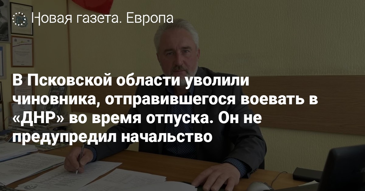 В Псковской области уволили чиновника, отправившегося воевать в «ДНР» во время отпуска. Он не предупредил начальство