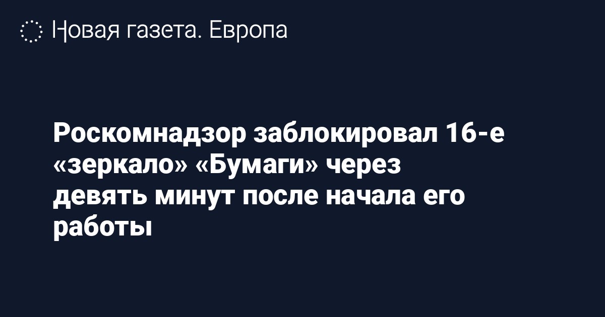 Роскомнадзор заблокировал welcomeback.paper-paper.uno — 16-е «зеркало» издания «Бумага» через девять минут после того, как оно начало работу. Об этом пишет само издание.
