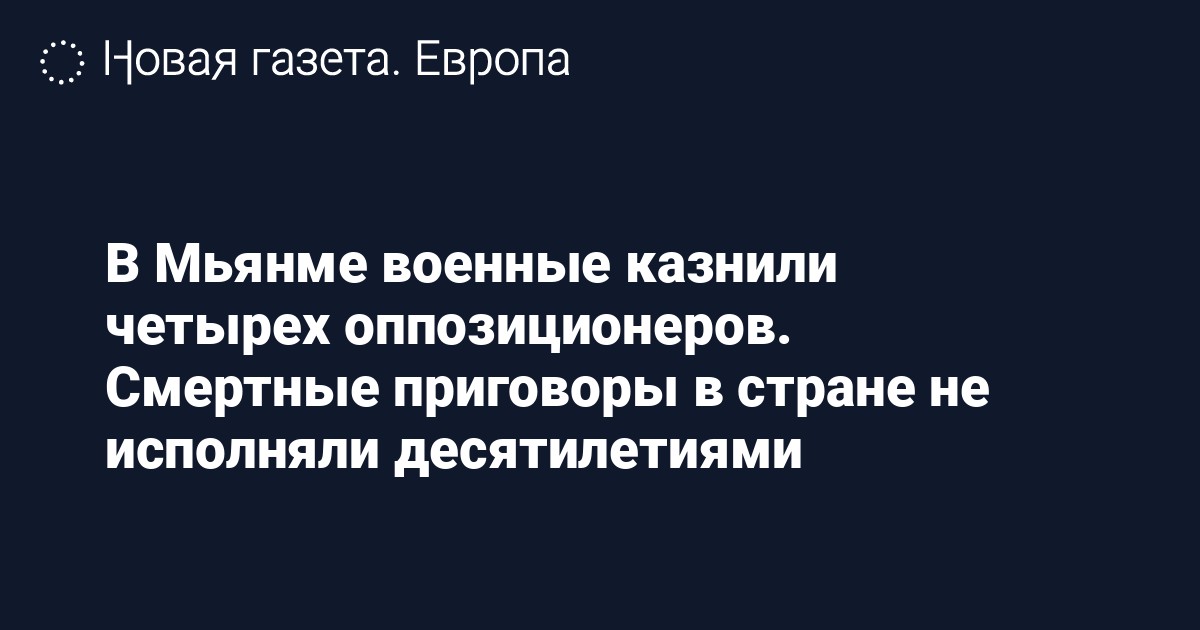 Среди казненных были 53-летний писатель Ко Джимми и 41-летний парламентарий и хип-хоп исполнитель Пьо Зея То, уточняет газета Global New Light of Myanmar.
