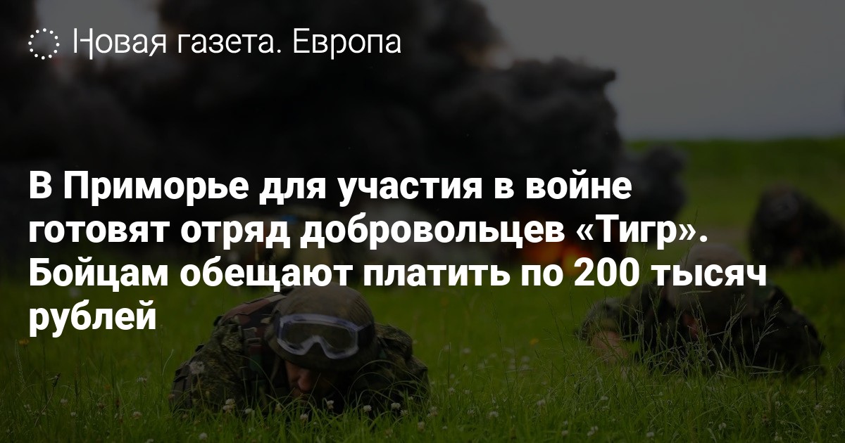 Правительство Приморского края также опубликовало рекламу батальона «Тигр». В отряд предлагают вступить мужчинам от 18 до 60 лет, для этого надо обратиться в военкомат.