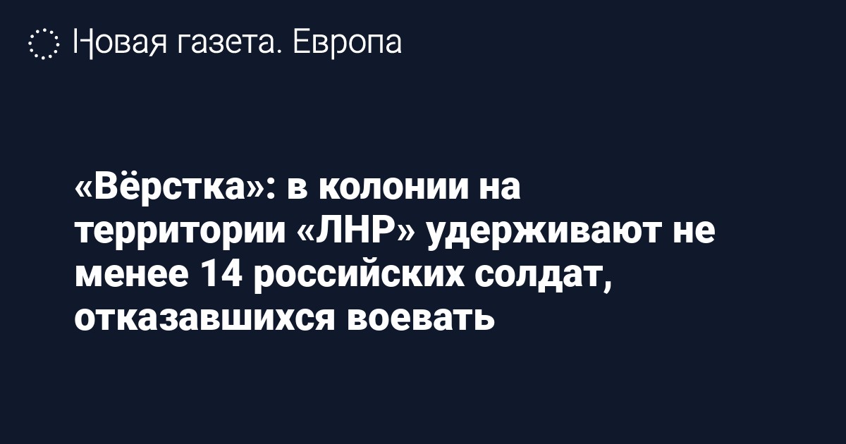 В исправительной колонии №19 в поселке Красный Луч (самопровозглашенная «ЛНР») находятся не менее 14 российских военнослужащих, отказавшихся участвовать в боевых действиях и планировавших разорвать контракт с Минобороны РФ. Об этом пишет «Вёрстка» со ссылкой на родителей «отказников».