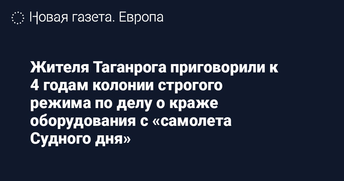 Таганрогский городской суд приговорил к 4 годам колонии строгого режима местного жителя Жору Хачунца по делу о краже оборудования с «самолета Судного дня» Ил-80. Об этом сообщает ТАСС со ссылкой на корреспондента из зала суда.