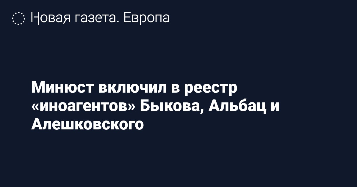 Минюст РФ включил в реестр СМИ-«иностранных агентов» писателя Дмитрия Быкова, главреда The New Times Евгению Альбац и журналиста, основателя благотворительного фонда «Нужна помощь» Дмитрия Алешковского.