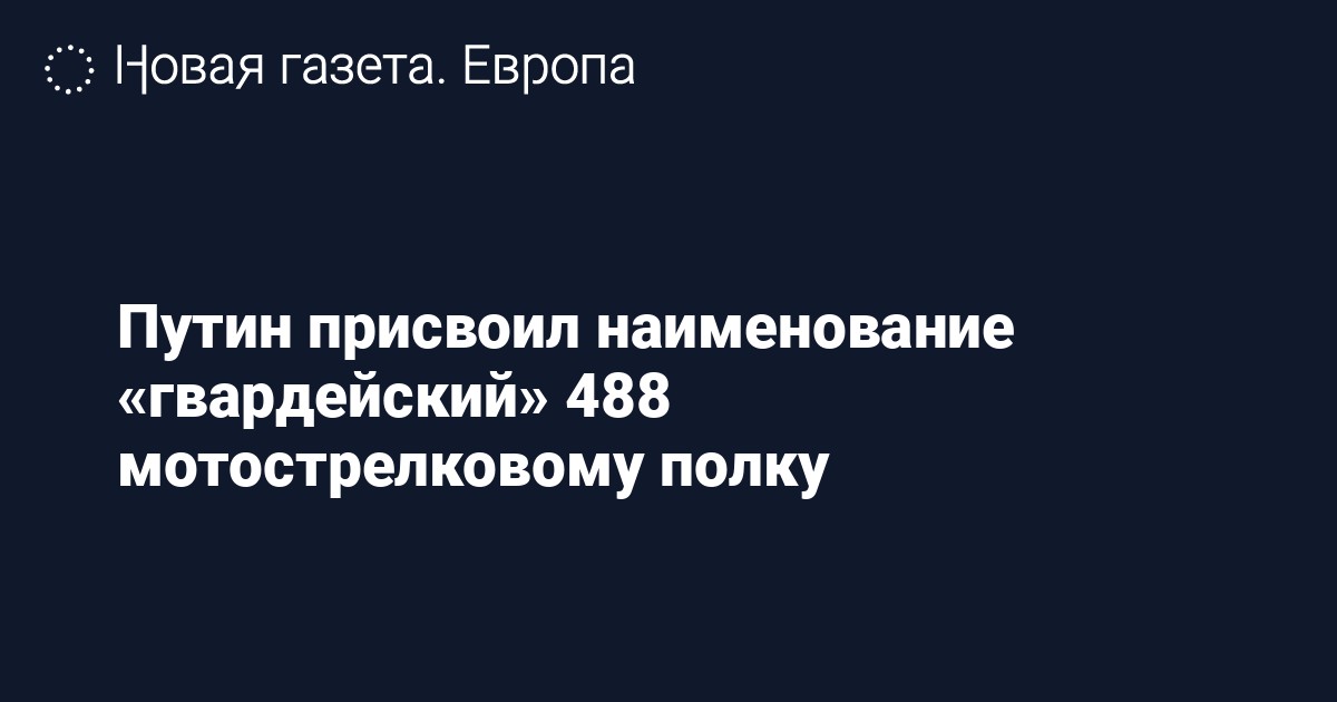 Президент России Владимир Путин присвоил почетное наименование «гвардейский» 488 мотострелковому Симферопольскому Краснознаменному ордена Суворова полку имени Серго Орджоникидзе. Соответствующий указ опубликован на официальном интернет-портале правовой информации.
