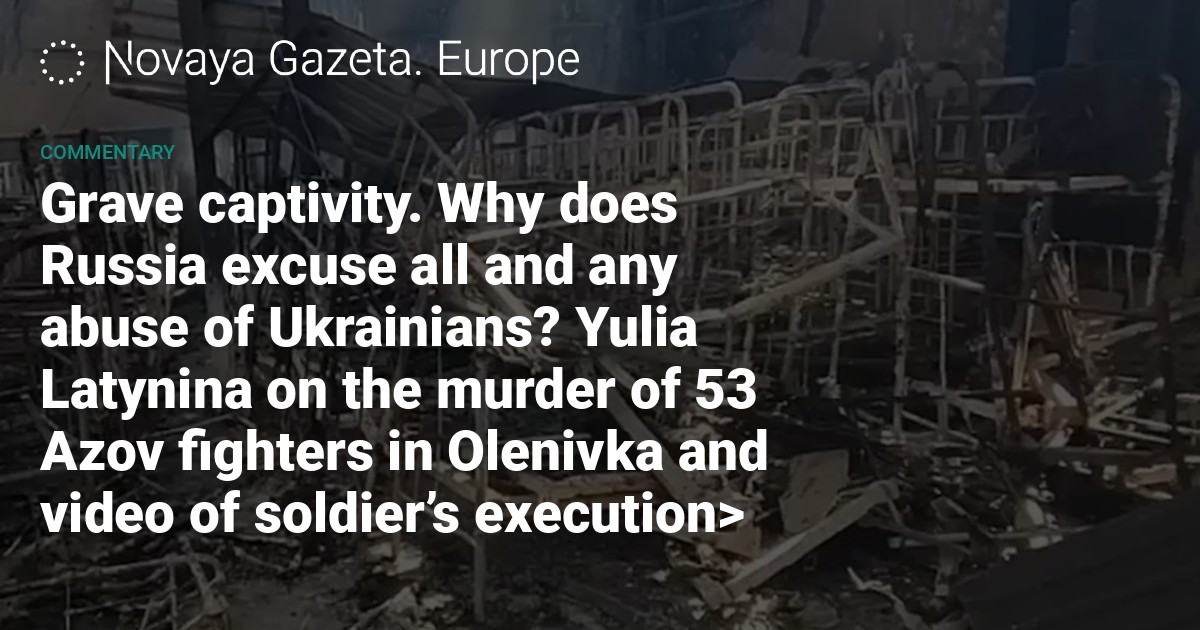 Now the goal of the strategy has changed — they want to make Ukrainians more cruel. So that when a Ukrainian soldier sees the killed POWs in Olenivka and hears that, actually, he was the one to kill them, the soldier will go crazy, and then Russian TV will be able to say: “You see? They want all Russians to die! This is an existential threat! These Nazis want us all exterminated!”