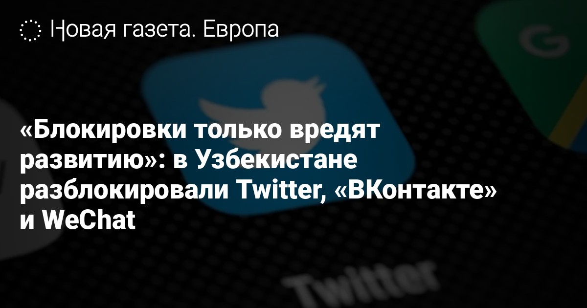 В Узбекистане сняли ограничения на доступ к социальным сетям Twitter, «ВКонтакте» и WeChat. Об этом сообщает агентство информации и массовой коммуникации (АИМК) при президенте страны.