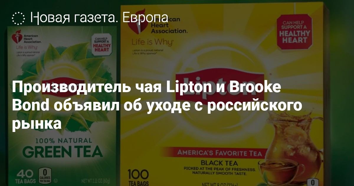 Нидерландская чайная компания Ekaterra объявила об уходе с российского рынка и прекращении производства чая марок Lipton, Saito и Brooke Bond к концу 2022 года. Об этом говорится в пресс-релизе компании.