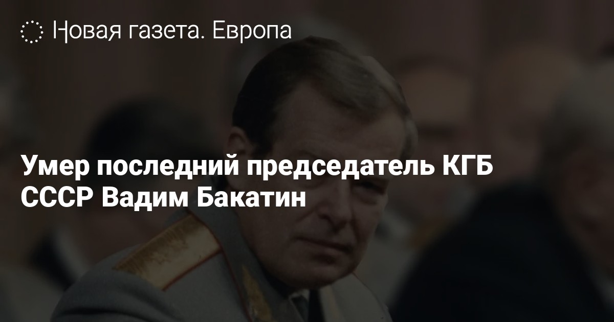 В возрасте 84 лет скончался последний председатель КГБ СССР Вадим Бакатин, пишет РИА Новости со ссылкой на информированный источник.