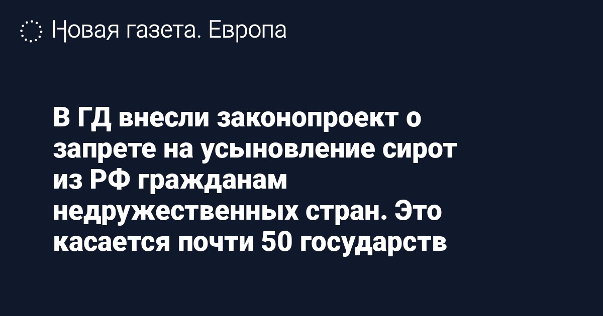 В пояснительной записке говорится, что «передача ребенка-сироты на воспитание в семьи граждан иностранных государств», которые Россия считает «недружественными», «очевидно, не отвечает национальным интересам нашей страны».
