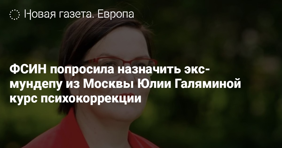 ФСИН попросила суд назначить курс психокоррекции бывшему московскому мундепу Юлии Галяминой. Об этом она рассказала в своем телеграм-канале.