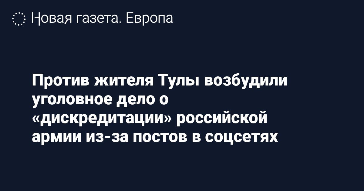 В Туле против 38-летнего местного жителя Андрея Павлова возбудили уголовное дело о «дискредитации» российской армии (ст. 280.3 УК), сообщает Информационно-аналитический центр «Сова».