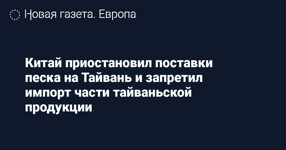 «Согласно соответствующим нормативным актам, принято решение о временном прекращении экспорта природного песка на Тайвань. Соответствующая мера вступает в силу с 3 августа», — сказано в документе.