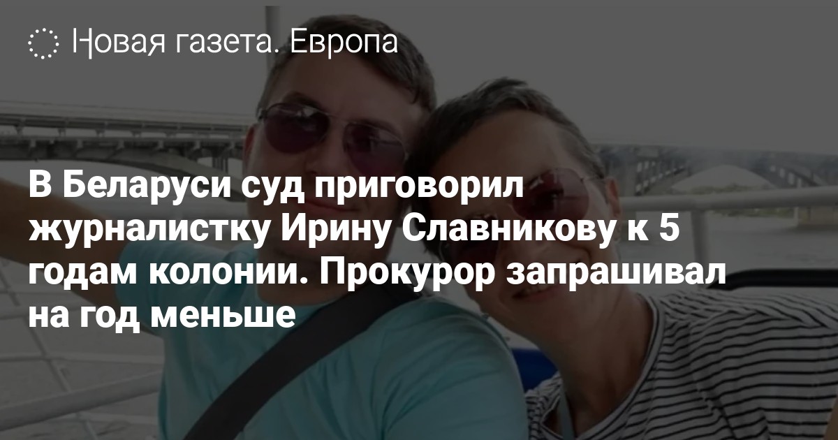 Ирина Славникова была руководителем минского корпункта польского телеканала «Белсат». Ее задержали в аэропорту Минска 30 октября прошлого года вместе с мужем, когда они возвращались из отпуска. Супругов дважды осудили по административным статьям — за публикацию в Facebook экстремистского контента» и «мелкое хулиганство». В общей сложности они отбыли по 30 суток ареста.