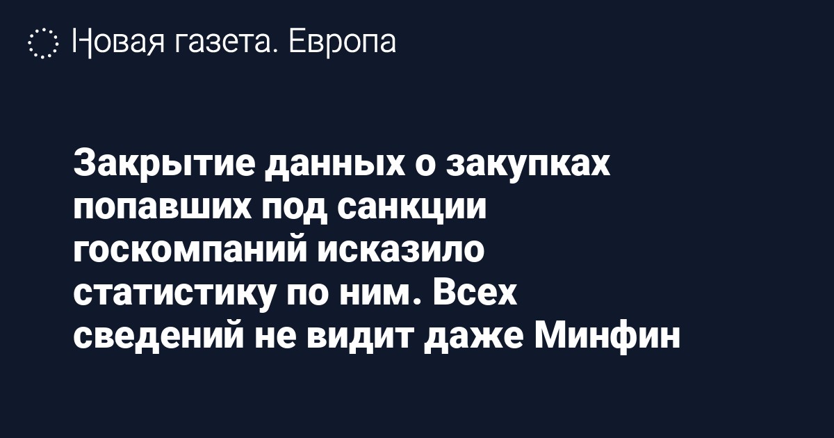 Закрытие данных о части закупок российских госкомпаний, попавших под санкции, исказило статистику по ним, так как теперь всех сведений не видит даже Минфин, сообщает «Коммерсант».