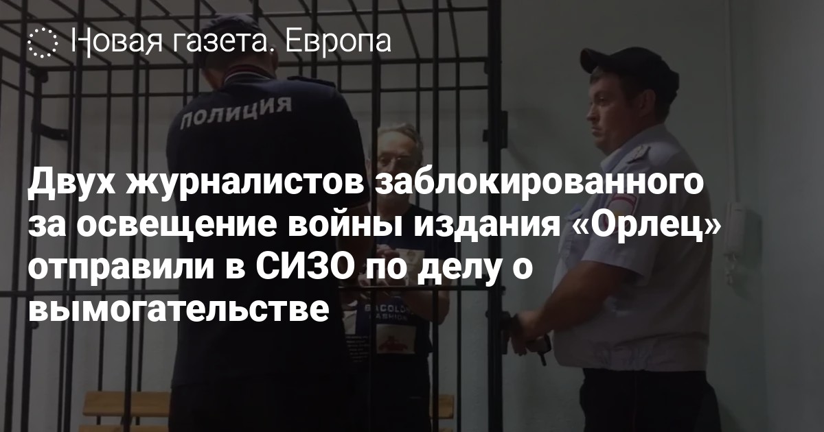 Администратора сайта «Орлец» Артема Прохорова и сотрудничавшего с изданием автора видеоблога «Резюме» Владимира Панфилова отправили в СИЗО по делу о вымогательстве (ч. 2 ст. 163 УК). Об этом сообщает само издание.