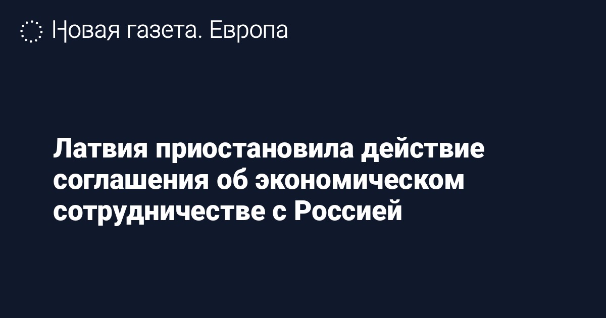 Латвия с 1 августа приостановила действие соглашения об экономическом сотрудничестве с Россией. Об этом сообщает государственное издание «Latvijas Vestenis» со ссылкой на латвийский МИД.