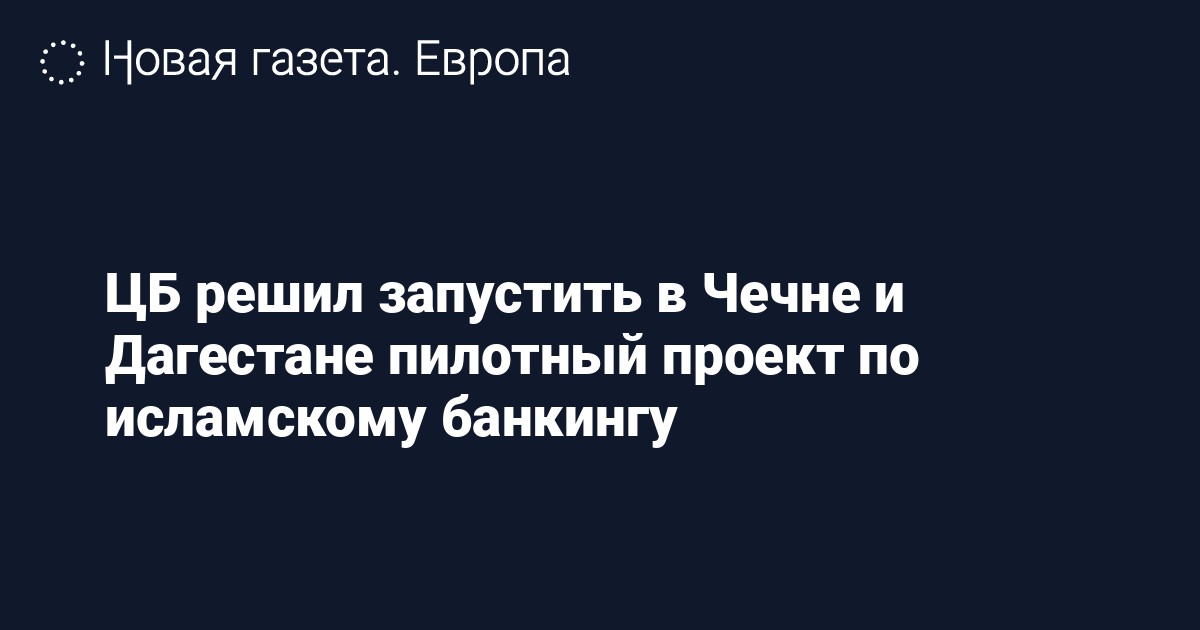 Центробанк запустит в Дагестане и Чечне пилотный проект по исламскому банкингу. Об этом пишет «Интерфакс» со ссылкой на пресс-службу регулятора.