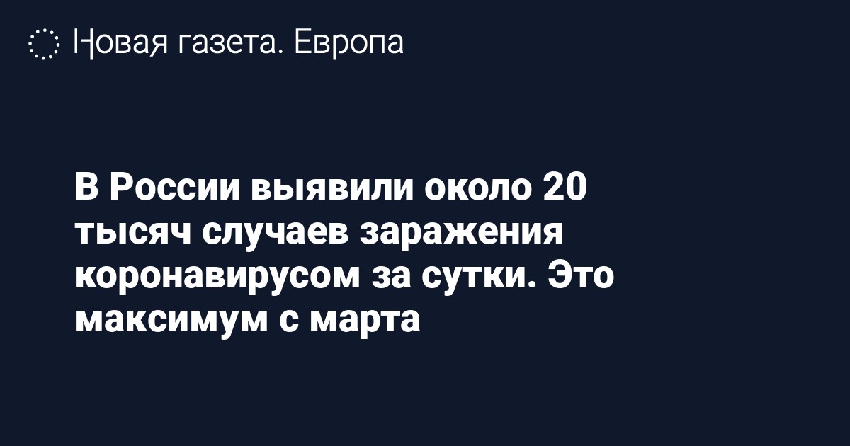 В России выявили 19 974 новых случая заражения коронавирусом за сутки, сообщается на сайте «Стопкоронавирус.рф». Это максимум с конца марта: после 31 марта суточное число заболевших не превышало 19 277 человек.