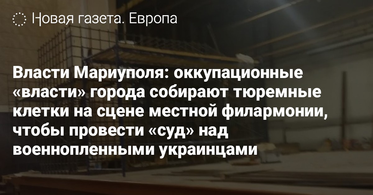 Мариупольский городской совет сообщил в своем телеграм-канале, что представители российских оккупационных «властей» города начали собирать из арматуры тюремные клетки на сцене мариупольской камерной филармонии, чтобы в сентябре устроить «показательный суд» над пленными солдатами ВСУ.