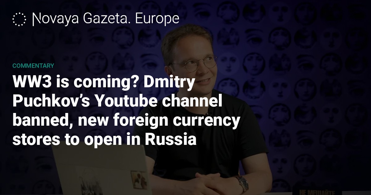 Watch Kirill Martynov, Novaya. Europe’s chief-editor, comment on last week’s news in his Saturday YouTube show