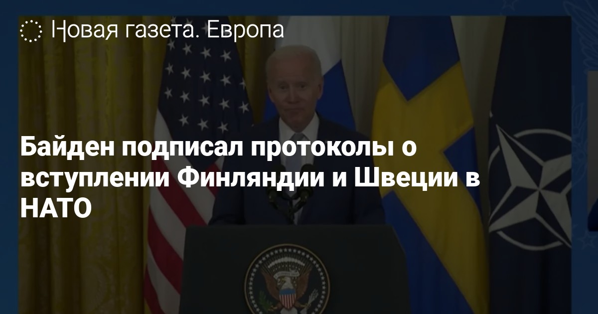 Президент США Джо Байден подписал протоколы о вступлении Финляндии и Швеции в НАТО. Об этом сообщается на его странице в твиттере.