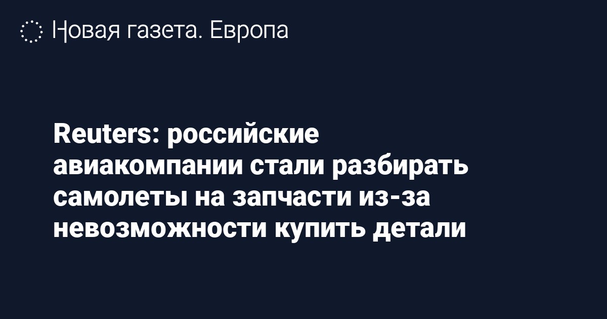 Один из собеседников агентства уточнил, что как минимум один российский самолет Sukhoi Superjet 100, а также Airbus A350, оба эксплуатируемые «Аэрофлотом», сейчас разбирают. Он добавил, что Airbus A350 почти новый.