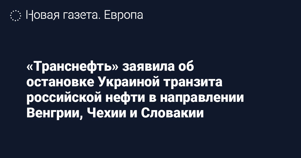 «Транснефть» сообщила, что «Укртранснафта» остановила прокачку нефти РФ по южной ветке нефтепроводной системы «Дружба» в адрес Венгрии, Чехии и Словакии. Об этом пишет РИА Новости со ссылкой на пресс-секретаря, советника президента «Транснефти» Игоря Демина.