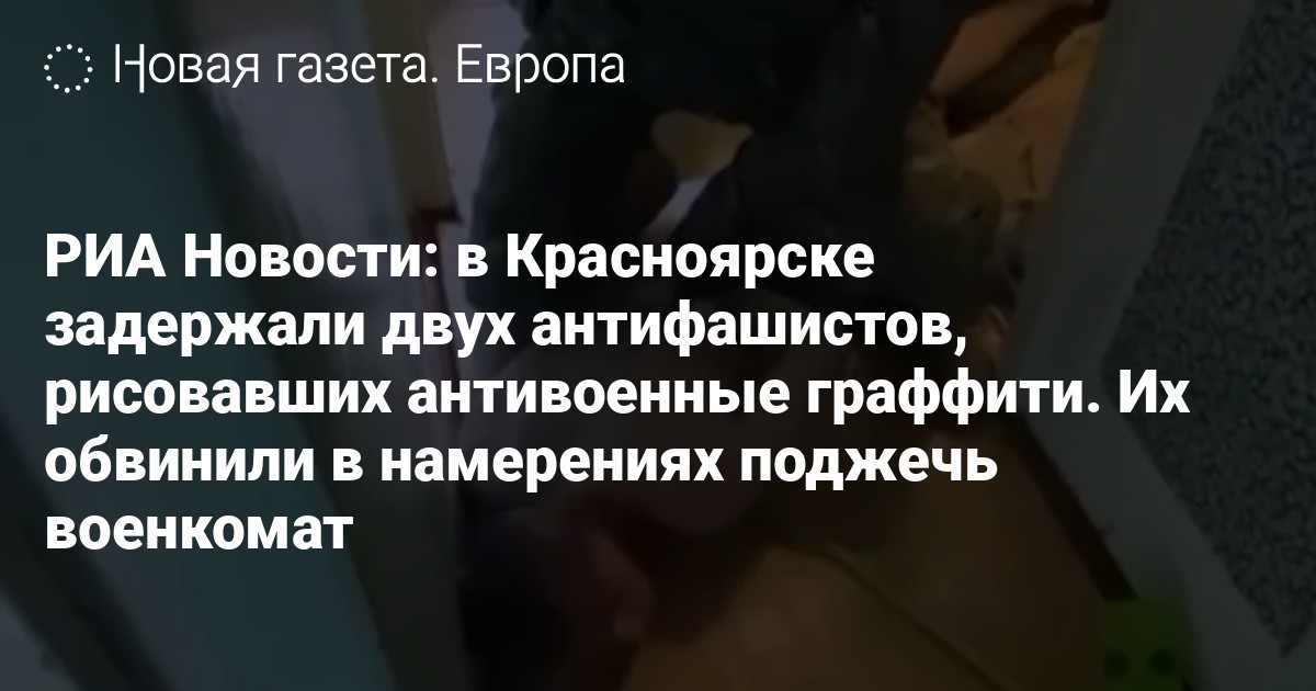 Собеседник агентства заявил, что Виноградов и Иванов выступают против российского вторжения в Украину. По версии следствия, они «наносили граффити на улицах Красноярска, а также вынашивали намерения по поджогу военкомата», уверяет источник РИА. Сейчас, по данным агентства, решается вопрос о мере пресечения.