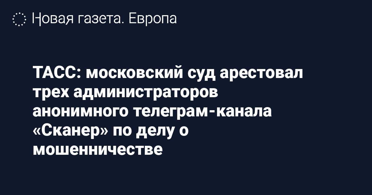 Кроме того, как сообщает Baza, были задержаны администраторы еще нескольких политических и экономических каналов, якобы входивших в одну «сетку» со «Сканером»; в их числе — каналы «Финансовый караульный», «Адские бабки», «Мамкин финансист», «Е-магия» и Riddle.