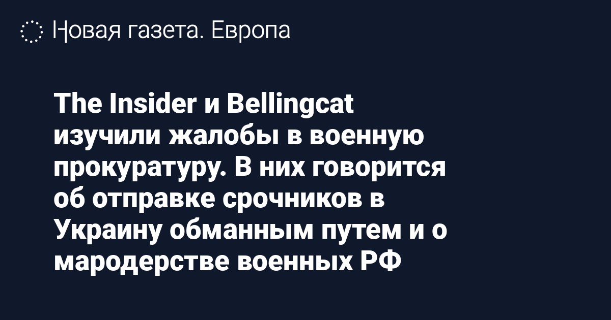 Издание The Insider* и расследователи из Bellingcat* ознакомились с жалобами родственников находящихся в Украине российских военнослужащих, где говорится, что военных принуждают участвовать в войне, срочников заставляют подписывать контракты, солдатам не обеспечивают питание и медпомощь. Материал опубликован на сайте The Insider.