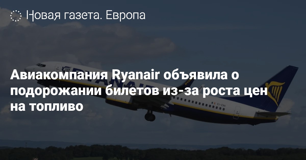 Ирландского лоукостер Ryanair вынужден поднять цены на авиаперелеты в связи с ростом стоимости топлива. Об этом сообщает «Би-би-си» со ссылкой на директора авиакомпании Майкла ОʼЛири.
