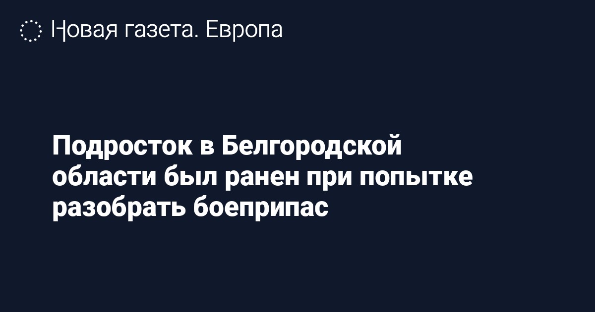 В Белгородской области пострадал подросток, который пытался разобрать боеприпас, сообщил губернатор региона Вячеслав Гладков.